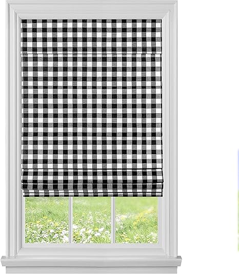 Black And White Roman Shades Kitchen : This is a roman shades hack used for my farmhouse style kitchen and dining room home decor.. Coastal kitchen white cabinets black counters peacock granite. The most common roman kitchen shades material is metal. The black and white striped 'roman shade' is made from covering a former mini blind with fabric. Roman shades are a functional and stylish. The classic look of white fabric roman shades with a blue/gray color.